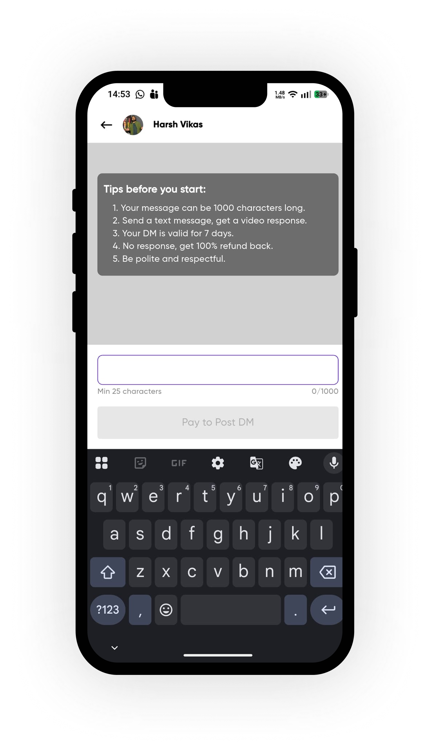 Get a video response for your DM. Authentic and Real.