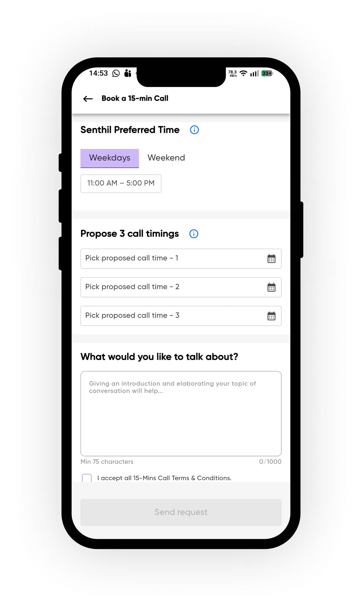 Send a Video Call request to your favorite personalities with ease.